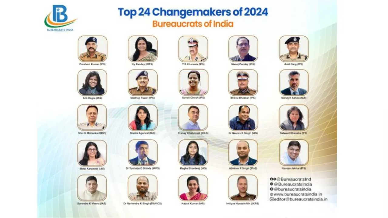 सूरत: ब्यूरोक्रेट्स इंडिया संगठन द्वारा देश के 24 चेंजमेकर्स की सूची घोषित की गई है। ये वे 24 लोग हैं जिनके नेतृत्व और प्रतिबद्धता ने वर्ष 2024 में देश की प्रगति में महत्वपूर्ण योगदान दिया है। महाकुंभ 2025 के एकीकृत कार्यान्वयन से लेकर 2024 के आम चुनावों में अग्रणी नवाचारों, हवाई अड्डों के आधुनिकीकरण, नक्सल मुद्दों से निपटने, स्वास्थ्य सेवा का विस्तार, एआई को अपनाने और कानून प्रवर्तन को मजबूत करने तक सभी क्षेत्रों में सर्वश्रेष्ठ प्रदर्शन करने वालों की सूची घोषित की गई है।